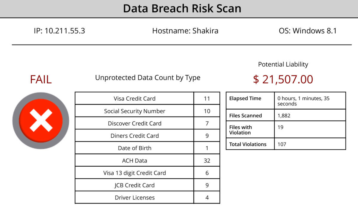 Risco é apenas uma possibilidade – até o momento em que se torna realidade. O Risk Intelligence identifica dados confidenciais e em risco em todas as redes e estações de trabalho gerenciadas, revelando o custo de uma possível violação de dados.